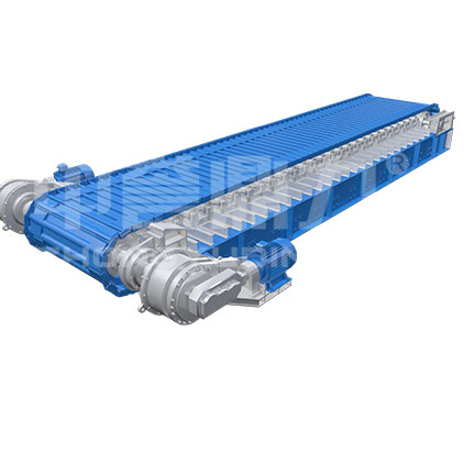 采用坦克鏈傳動(dòng),強(qiáng)度大拉力大,無需潤滑誤差小,使用壽命長,結(jié)構(gòu)堅(jiān)固穩(wěn)定。