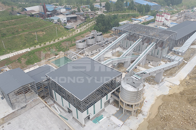 日產萬噸的石子加工方案的鳥瞰圖,是中譽鼎力根據現場情況進行設計的智能化環(huán)保石子生產線方案。