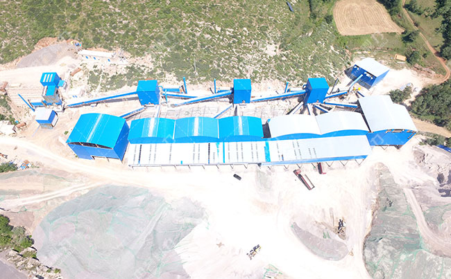 該年產(chǎn)300萬(wàn)噸砂石骨料生產(chǎn)線是中譽(yù)鼎力設(shè)計(jì)安裝承建,采用了重錘破碎機(jī)進(jìn)行破碎,破碎后的石料通過(guò)圓振動(dòng)篩進(jìn)行篩選分級(jí),得到多種規(guī)格的建筑石料,通過(guò)皮帶機(jī)送入相應(yīng)的料倉(cāng)中。整個(gè)項(xiàng)目采用了封閉式加工,降低了粉塵揚(yáng)塵污染,綠色環(huán)保。