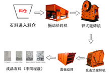 破碎設(shè)備在石料生產(chǎn)過程中的作用是重要的。一般而言,方案一中的顎式破碎機(jī)加反擊破主要用于破碎中硬度石料,如石灰石、頁巖、玄武巖、花崗巖、河卵石、青石、電石、電石渣等各種礦石的破碎。產(chǎn)量也由石料和破碎機(jī)型號的不同而不同。