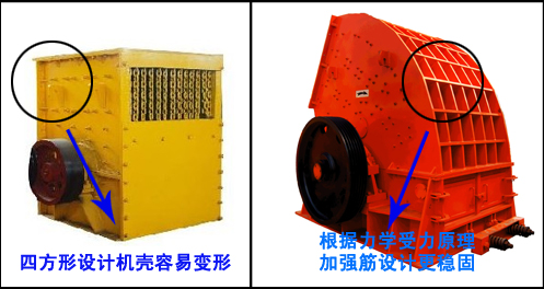 錘式榔頭機機殼:普通機殼,加強筋機殼。普通機殼容易變形,加強筋機殼根據(jù)力學(xué)原理設(shè)計相應(yīng)的弧度,更穩(wěn)固。