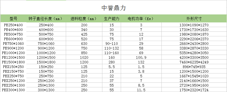 中譽(yù)鼎力顎式破碎機(jī)技術(shù)參數(shù):