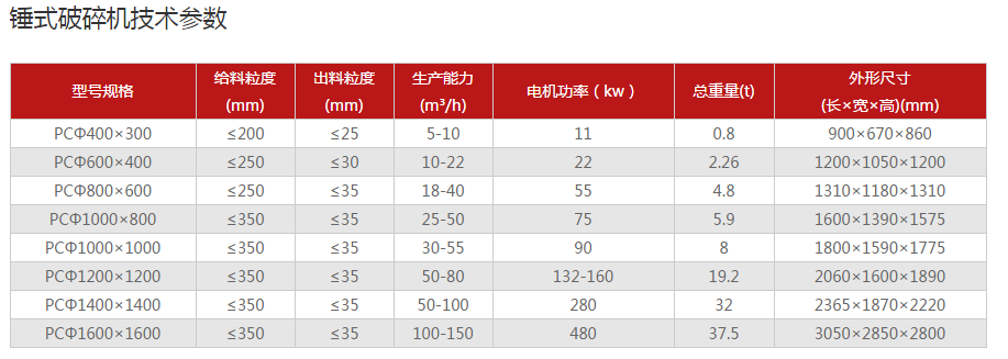 其他廠家錘式破碎機(jī)技術(shù)參數(shù):