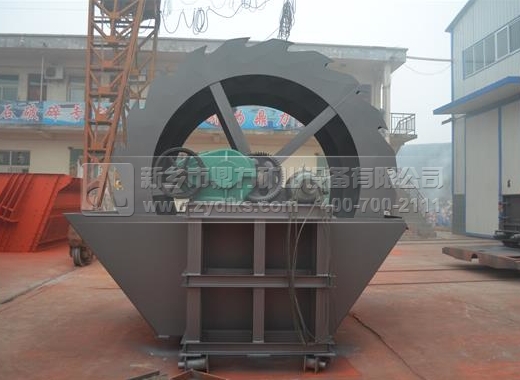 洗砂機(jī)工作時(shí),電機(jī)通過(guò)三角帶、減速機(jī)、齒輪減速后帶動(dòng)葉輪緩慢轉(zhuǎn)動(dòng),砂石由給料槽進(jìn)入洗槽中,在葉輪的帶動(dòng)下翻滾,并互相研磨,除去覆蓋砂石表面的雜質(zhì),同時(shí)破壞包覆砂粒的水汽層,以利于脫水;同時(shí)加水,形成強(qiáng)大水流,及時(shí)將雜質(zhì)及比重小的異物帶走,并從溢出口洗槽排出,完成清洗作用。干凈的砂石由葉片帶走,最后砂石從旋轉(zhuǎn)的葉輪倒入出料槽,完成砂石的清洗作用。