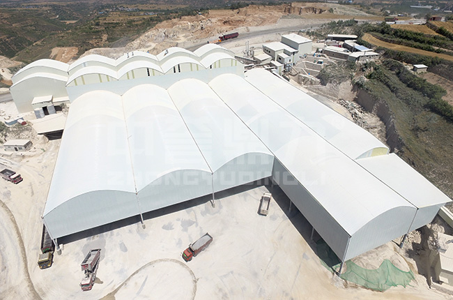 配置有脈沖袋式除塵器、組裝式廊道、儲(chǔ)料倉(cāng)等環(huán)保設(shè)備,大大避免了玄武巖在加工過(guò)程中產(chǎn)生的粉塵及揚(yáng)塵污染。