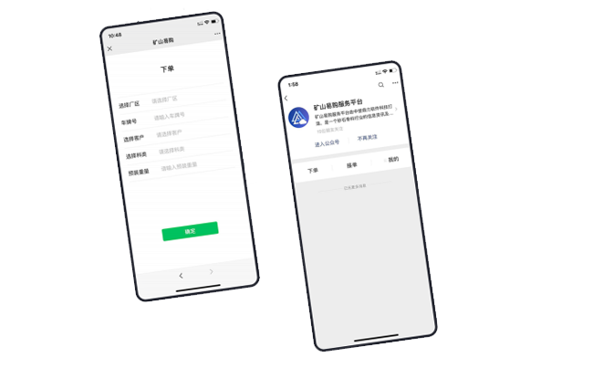 礦山易購(gòu)公眾號(hào)的主要功能有下單、接單、行業(yè)信息,方便部分小型客戶及來(lái)廠區(qū)的司機(jī)購(gòu)料需求。