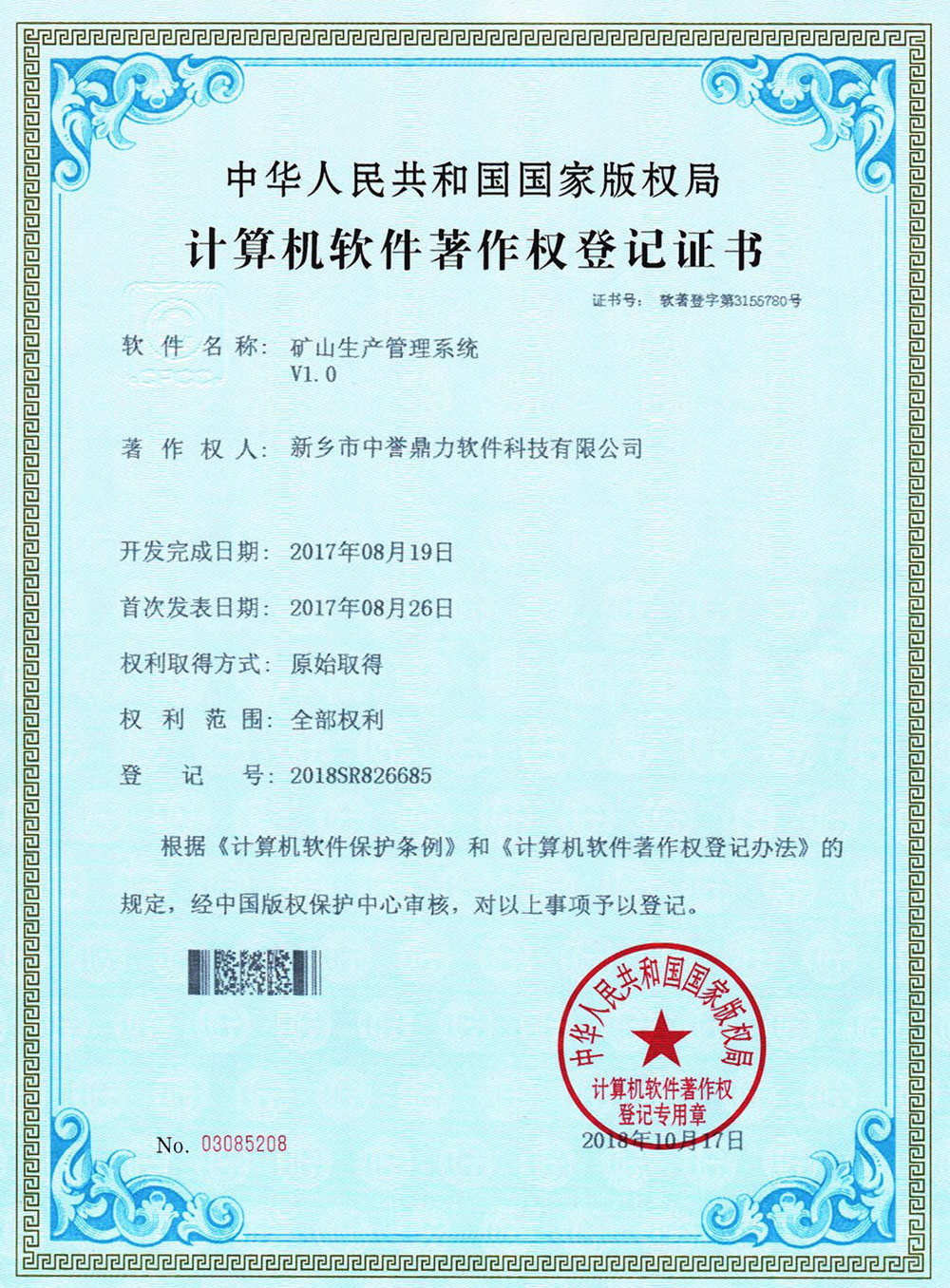 登記號(hào):2018SR826685