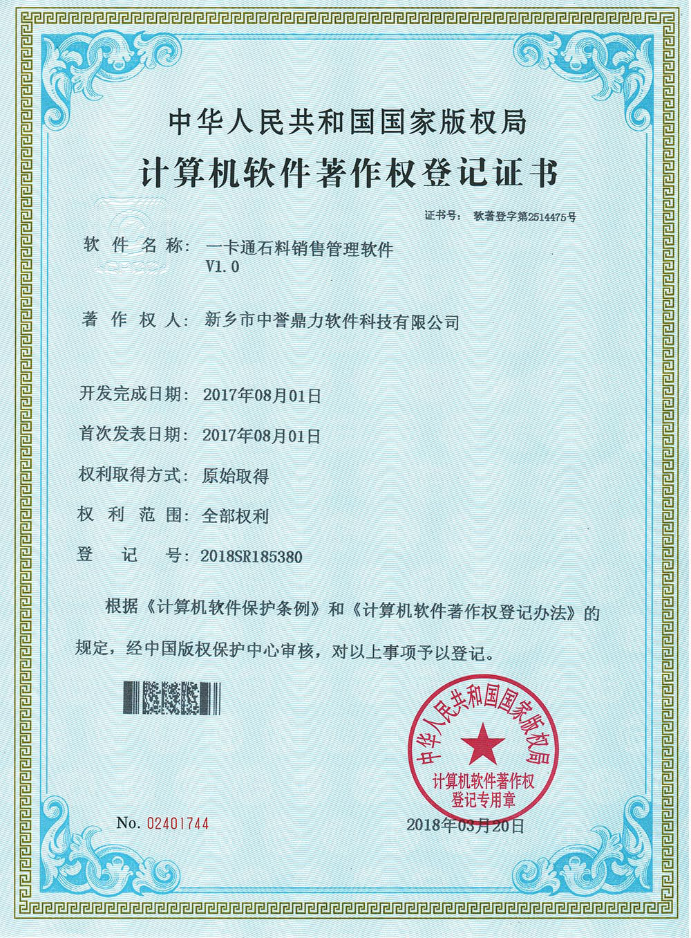 登記號(hào):2018SR185380